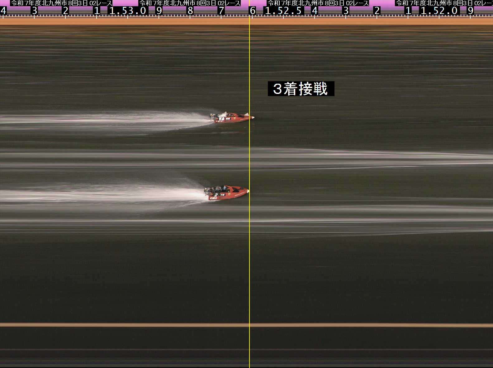 「ミッドナイトボートレースBOATBoyカップ」4日目2Rゴール判定写真をアップしました。