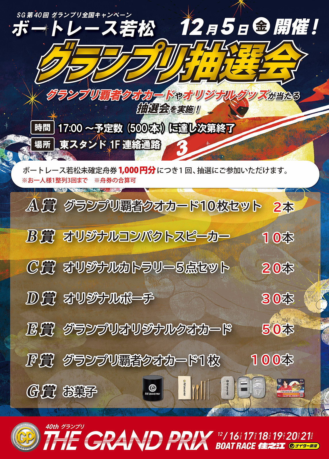 ボートレース住之江で開催されるSG第40回グランプリ全国キャンペーン!
